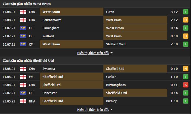 Phong độ gần đây West Brom vs Sheffield Utd: