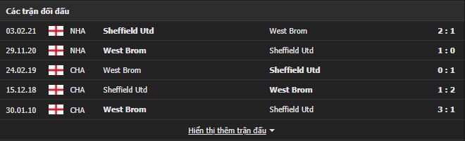 Thành tích đối đầu West Brom vs Sheffield Utd: